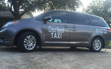 832-222-2200 ----------Press extension 3 for airport reservations.---------- - From the operators of Sugar Land Taxi, First Colony Taxi and 713-TOWN-CAR AIRPORT TRANSPORTATION . ---$10 extra if west of GrandParkway--- ------Prices may change at anytime------ AIRPORT RATES Cinco Ranch West of 99 BUSH Call for Price Call for Price HOBBY Call for price Call for Price $10 surcharge for a van and for pickups between 9pm-8:30am and 3pm-6:30pm may apply. FLAT FEE DOES NOT INCLUDE TIP. PLEASE TIP YOUR DRIVER!
